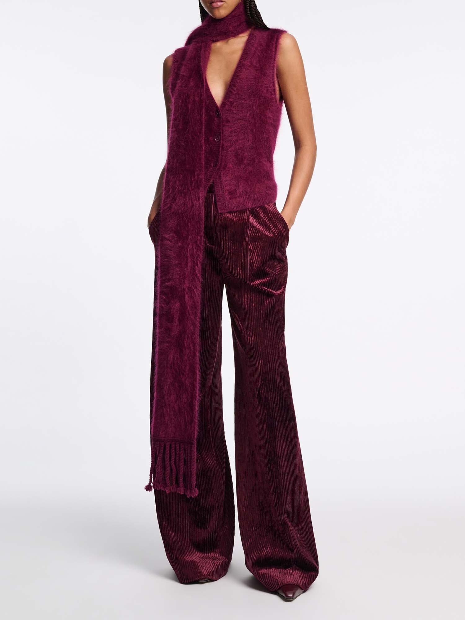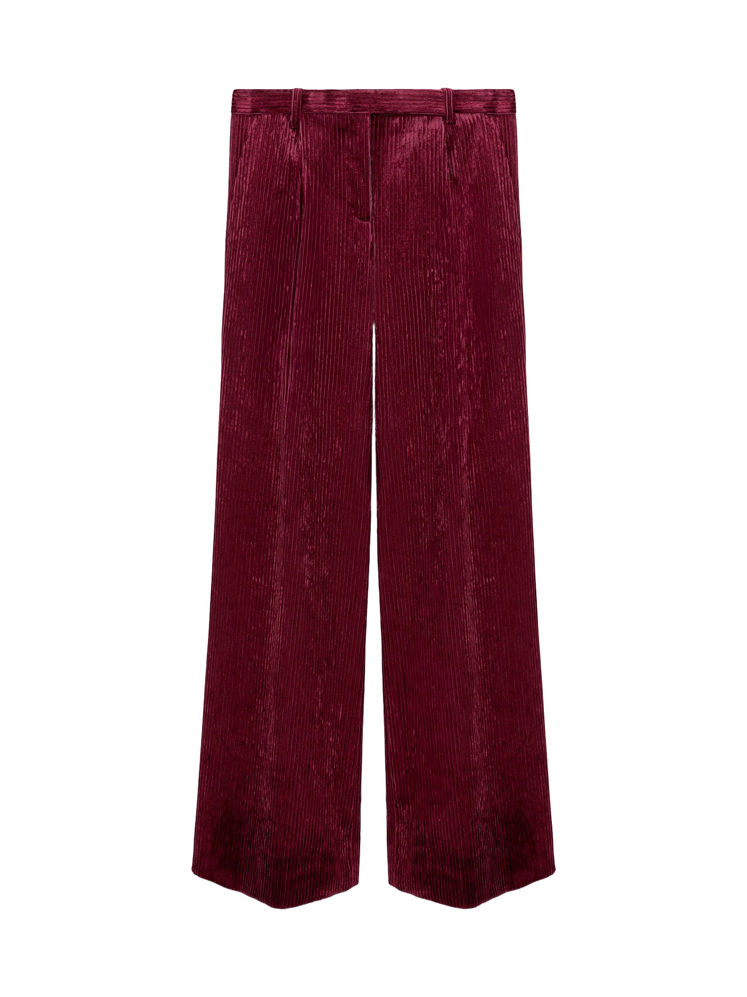 The coolest cord is velvety soft: The corduroy pants have a wide leg and stitched front pleat.