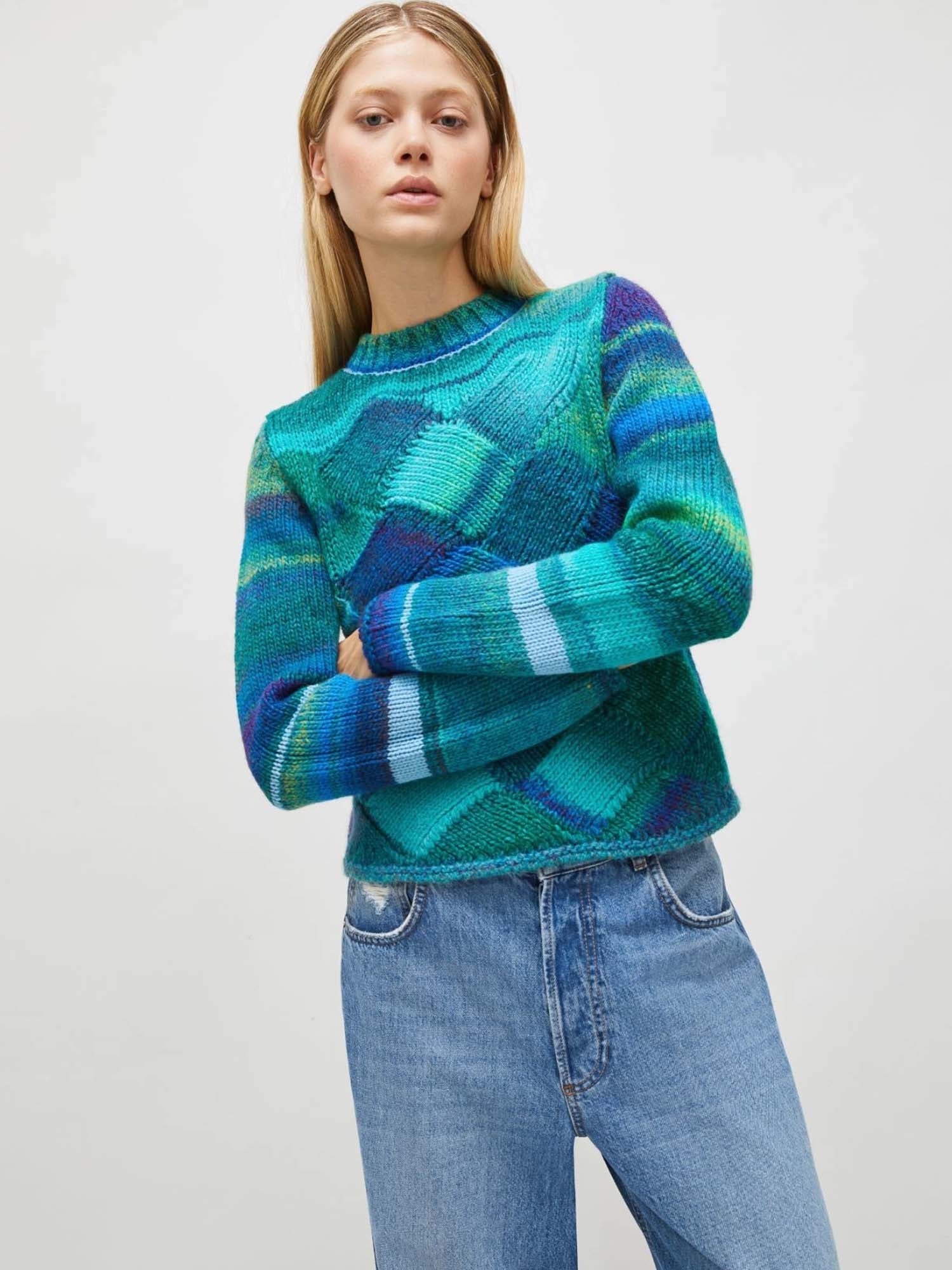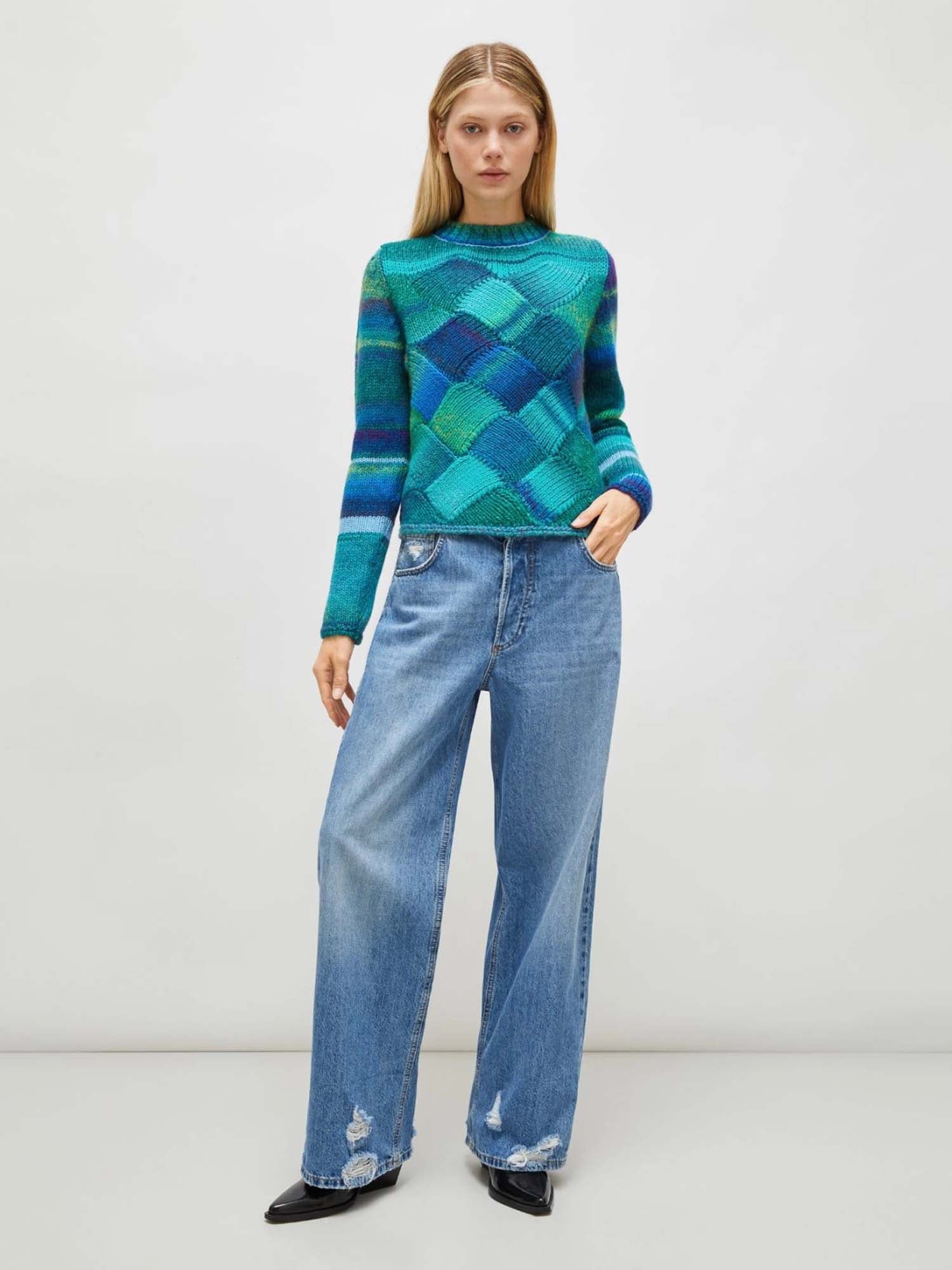 This wool-blend cropped sweater is defined by its 3D patterns and natural-hued colour palette: a winter wardrobe all-rounder. Redefine the concept of comfort by pairing it with extra-wide trousers.