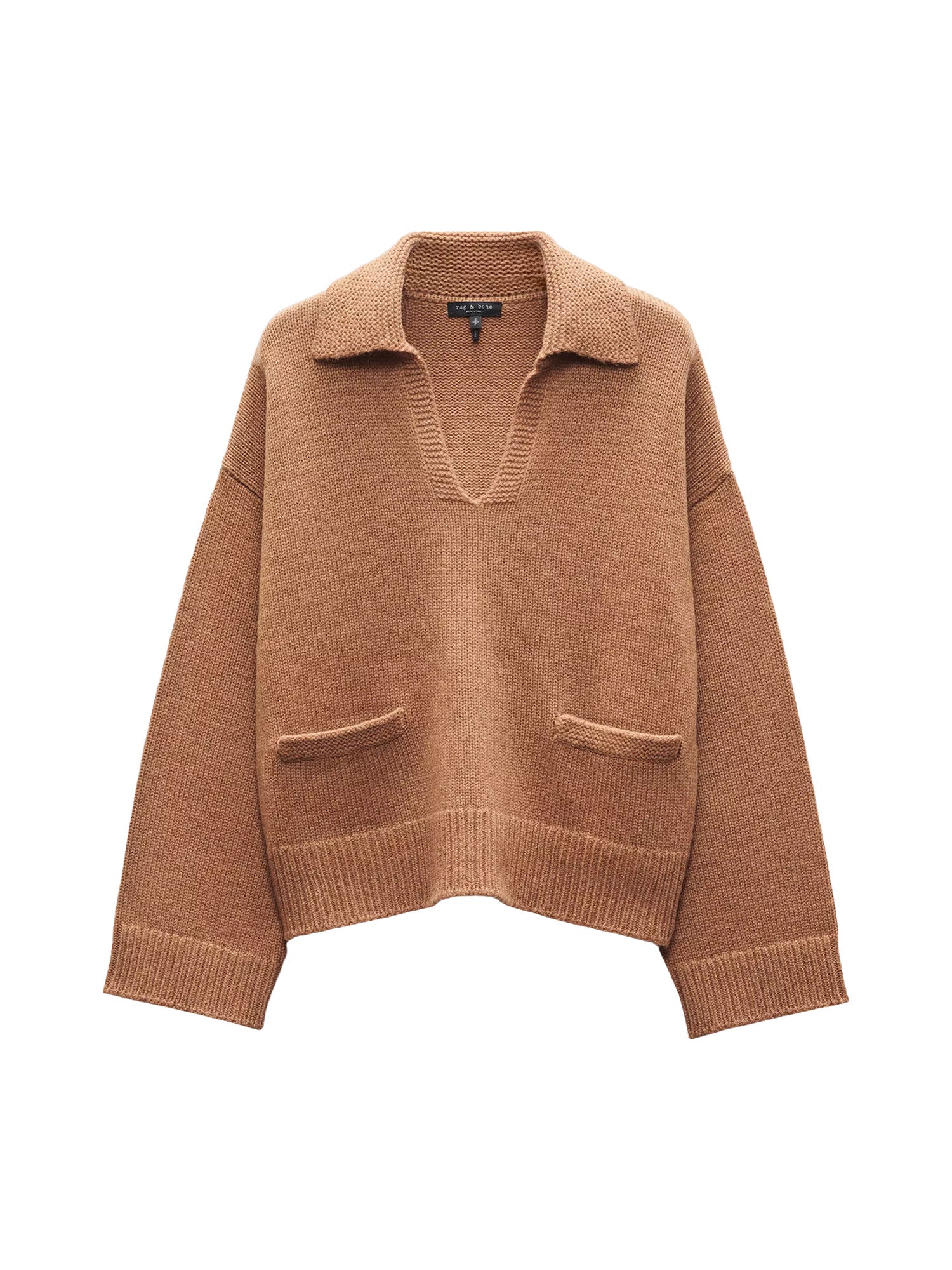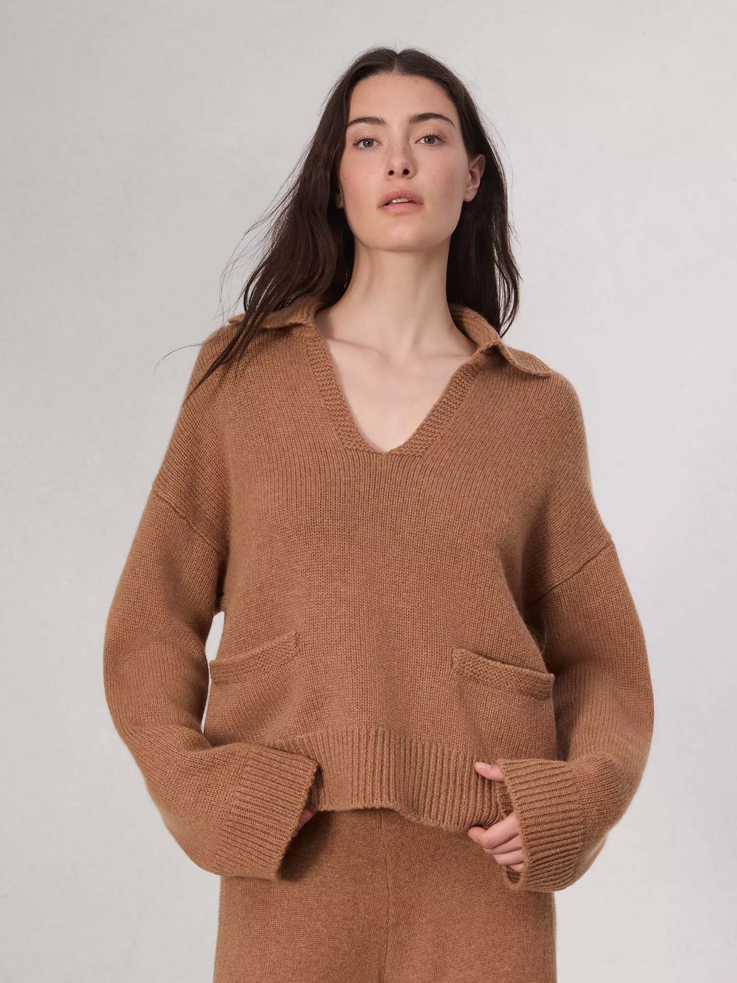 The Danica. Knit in sumptuous wool with a touch of cashmere, our polo sweater is crafted with a relaxed silhouette slip pockets.
