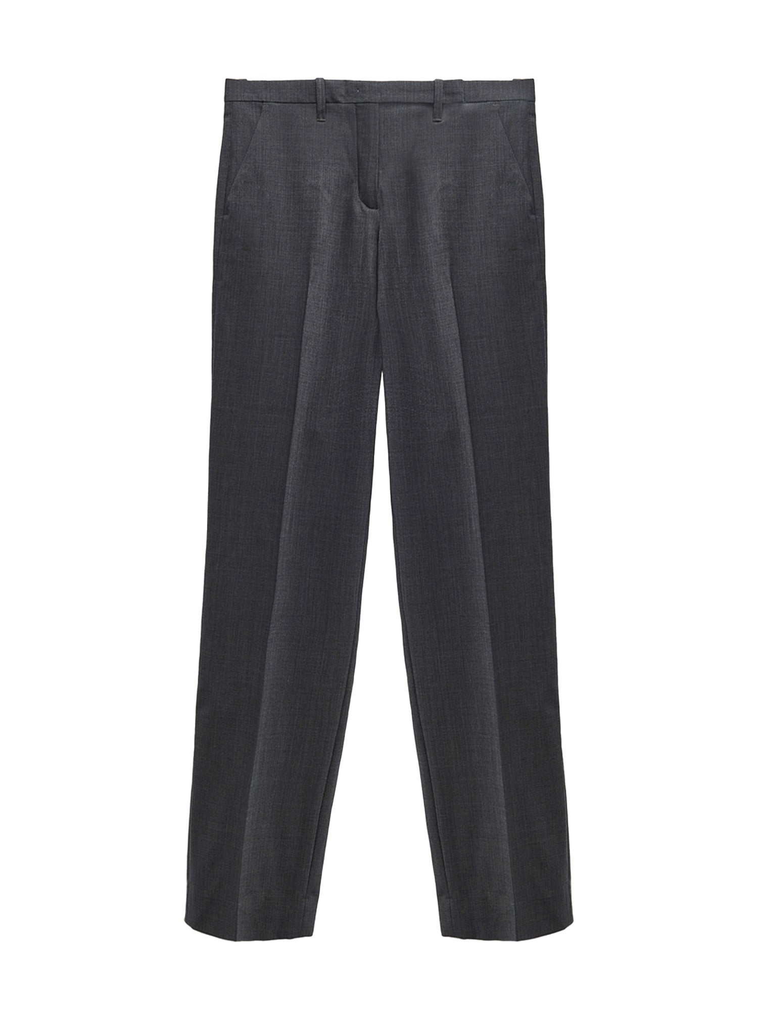 The pants are made from a comfy wool blend. They have a narrow leg and are mid-low rise.
