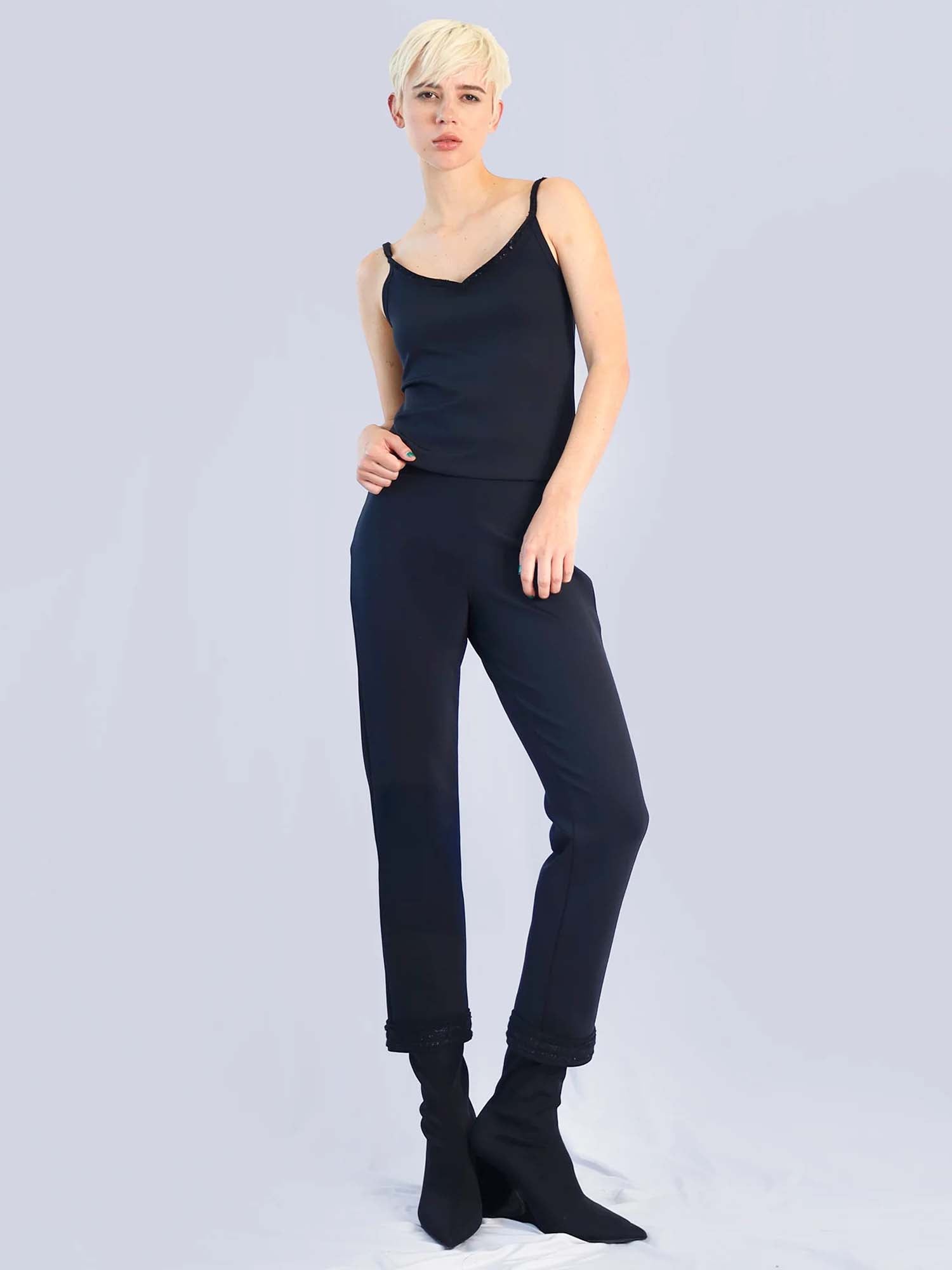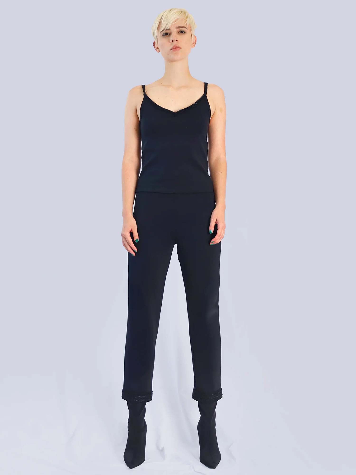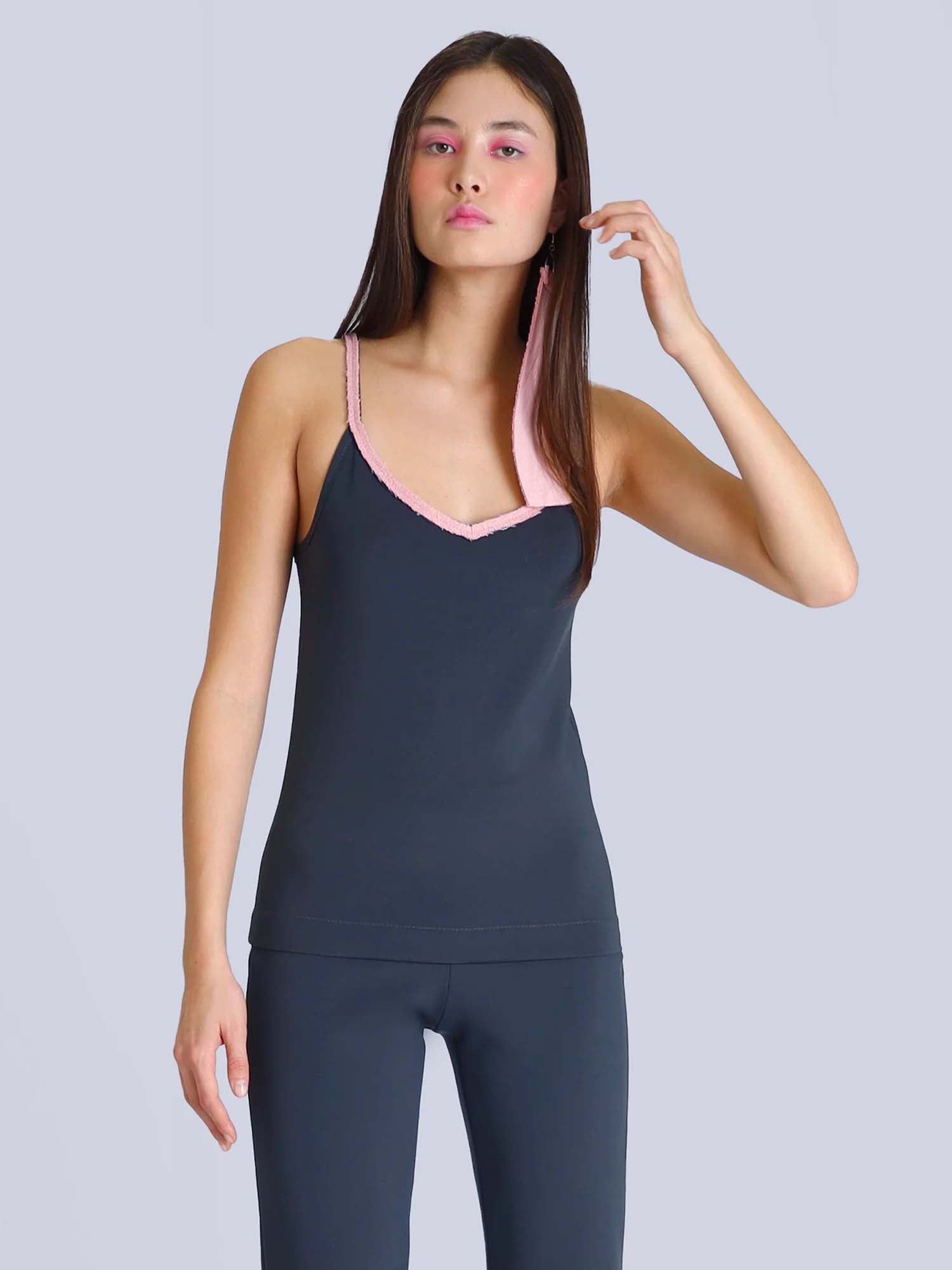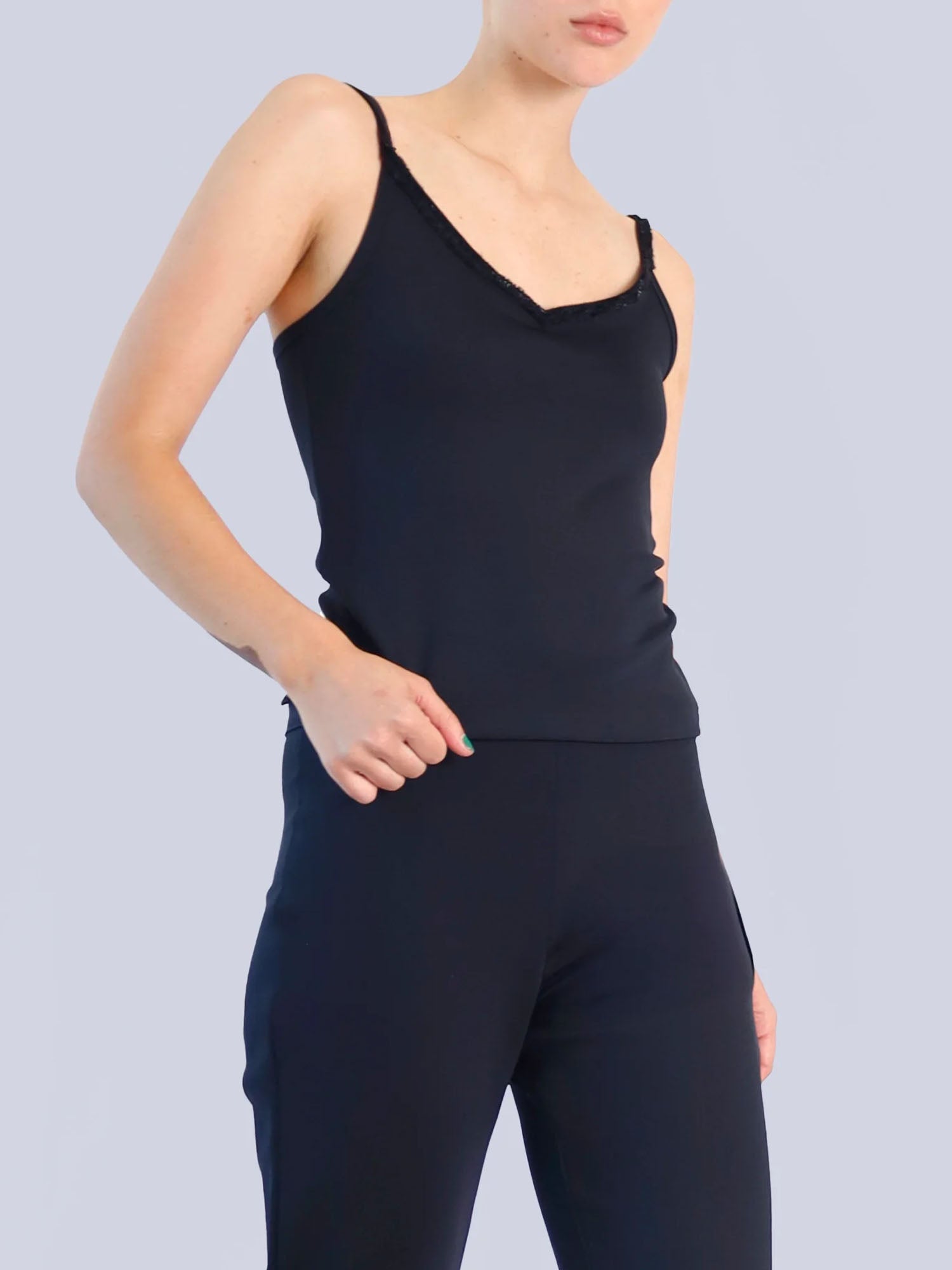 The Nadia top is simplicity refined. This V-neck tank features slender straps and a subtle tweed bouclé trim, adding texture and sophistication to a timeless silhouette. The perfect balance of ease and elegance—an essential elevated through Maison Marie Saint Pierre’s distinctive craftsmanship.