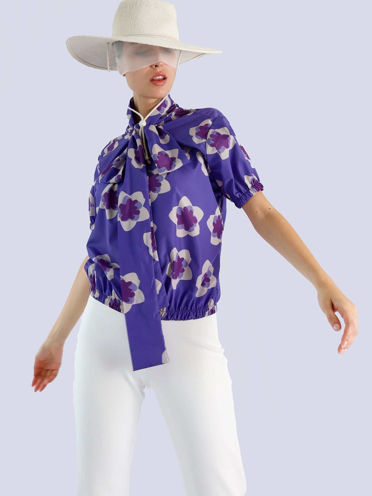 The Phenicia blouse celebrates movement and romance through its vibrant floral printed taffeta and softly voluminous silhouette. Elasticated cuffs and waistband create gentle structure, while the integrated scarf offers endless styling possibilities. Elegant yet playful, Phenicia brings a fresh and expressive touch to everyday dressing.