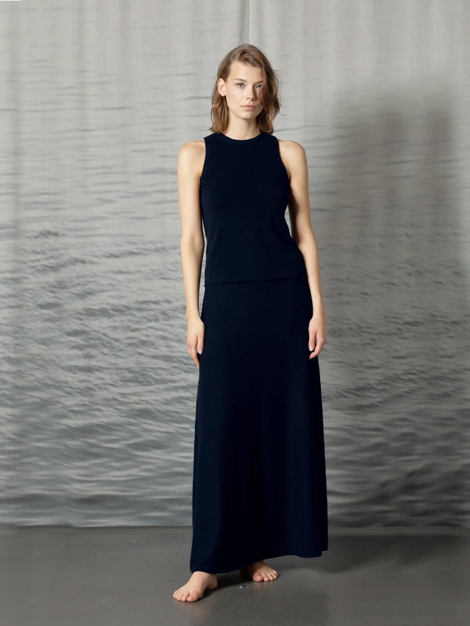 Crafted from a sumptuous blend of cashmere and cotton, this sleeveless high-neck top offers a soft, lightweight feel with a refined finish. Clean lines and a sculpted silhouette deliver understated luxury, perfect for effortless polish.