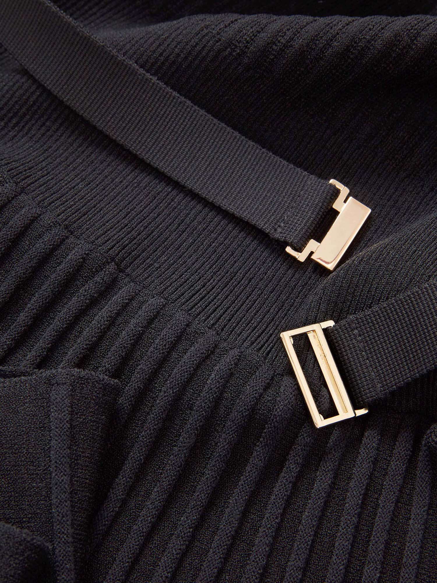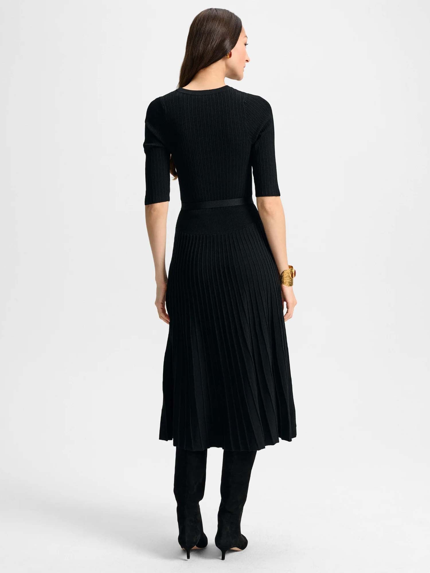 A sleek staple every closet needs. Crafted from a soft-ribbed knit blend, the Elthea half-sleeve midi dress is fitted at the bodice before flowing into an A-line skirt for a clean, elongating silhouette. An attached belt finished with a gold clasp buckle gently cinches the waist for timeless polish and flattering shape. Pair with tall boots for a layered look or strappy heels for an elegant finish.