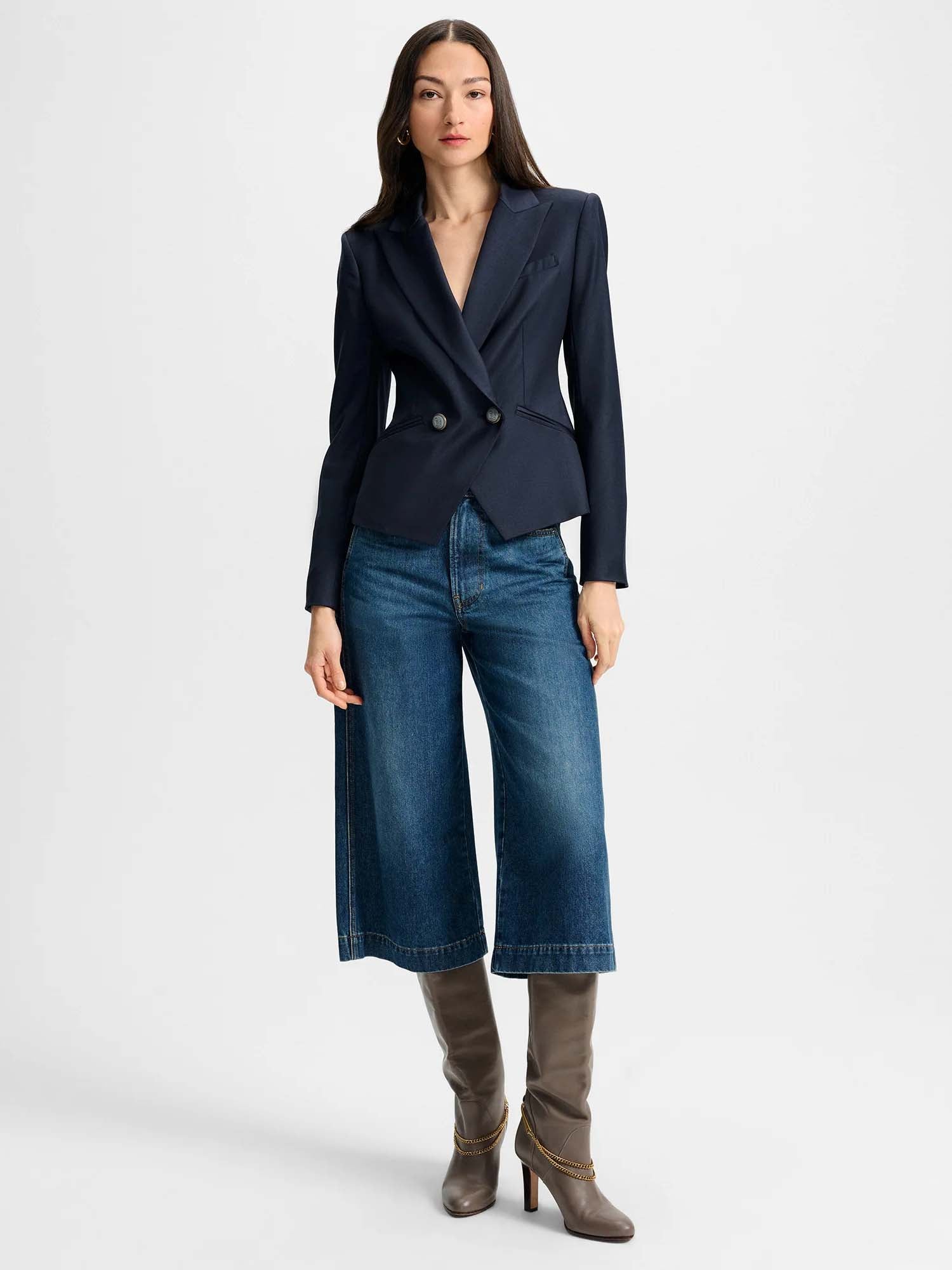 A modern take on a tailored classic. Crafted from a premium wool-blend, the Rickie features a cropped, double-breasted silhouette that subtly cinches at the waist when fastened. Finished with a peak lapel, angled welt pockets, and our signature crest buttons, it’s the perfect balance of polish and ease. Pair with high-waisted trousers for a sleek look—or your favourite denim for something more laid-back.
