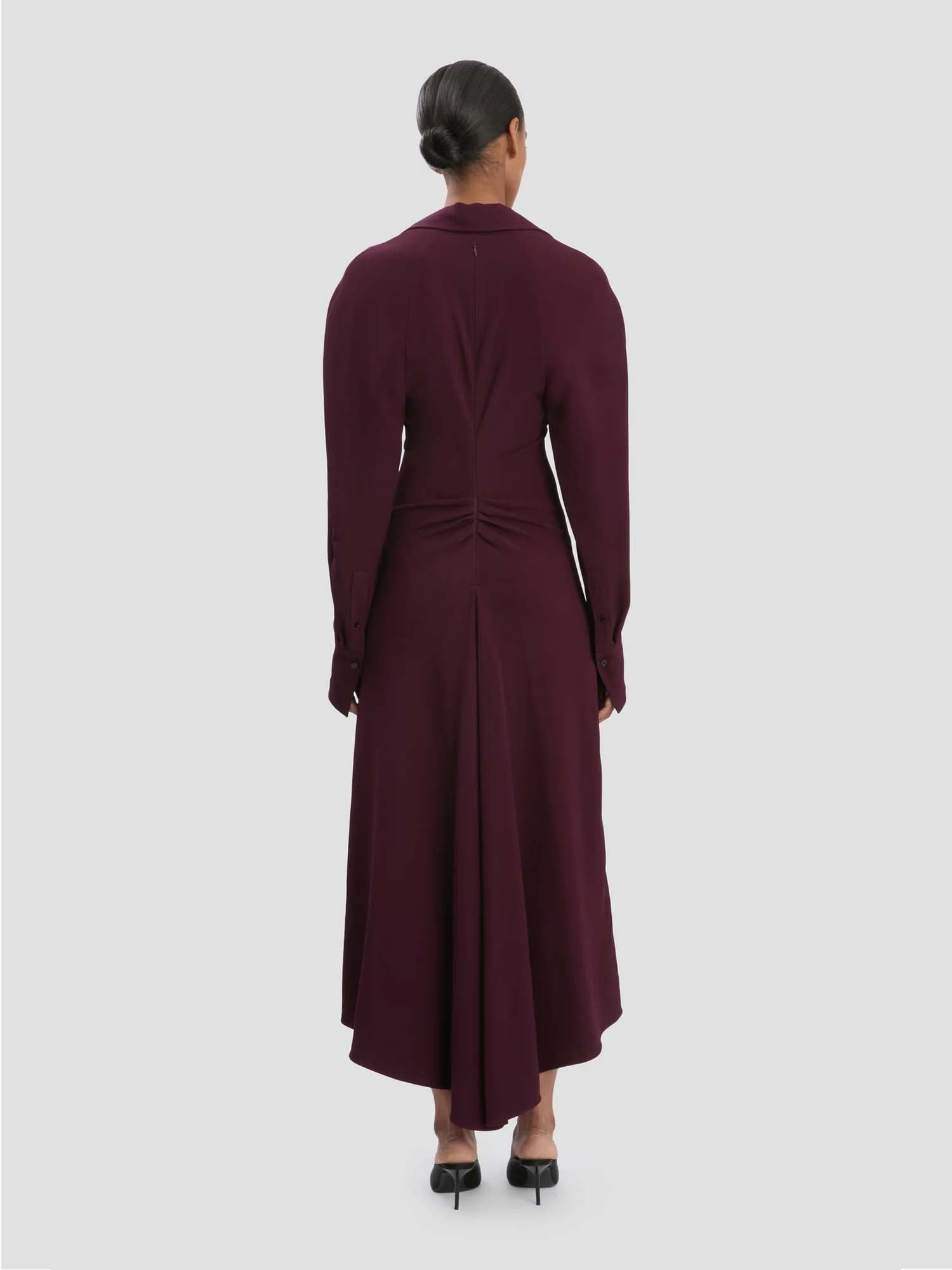 Blending masculine and feminine references, the Long Sleeve Polo Collar Midi Dress has a traditional collar and concealed front placket balanced by a fluid skirt with longer-length hem at the back. Raglan sleeves bring a laid-back nonchalance to the look, while a contrasting topstitch adds an elevated finishing touch.