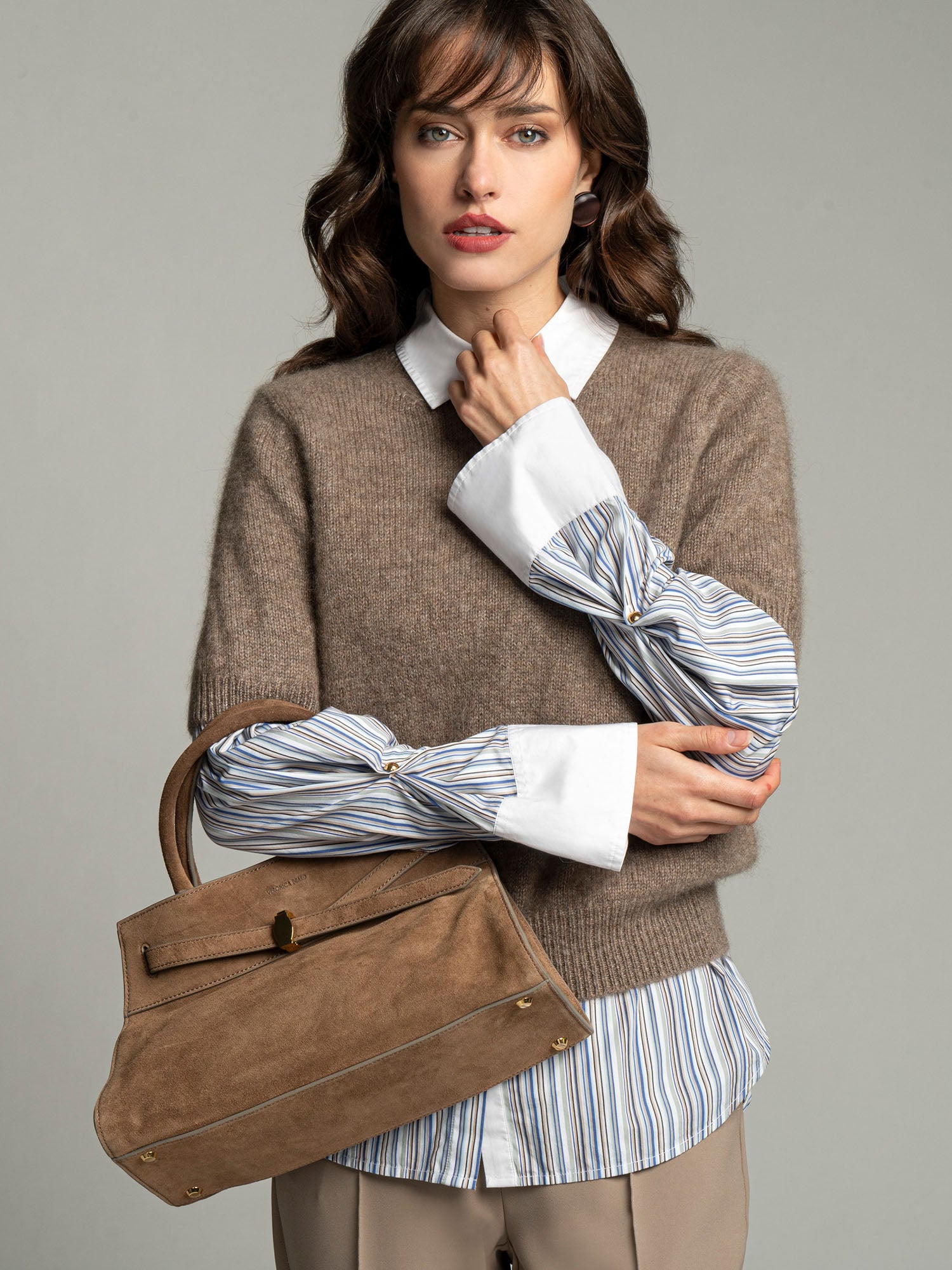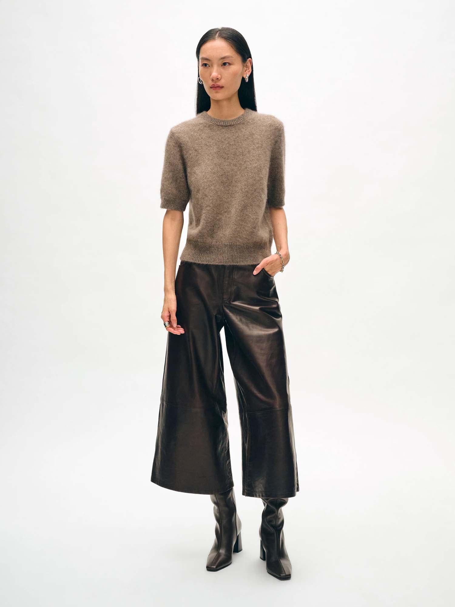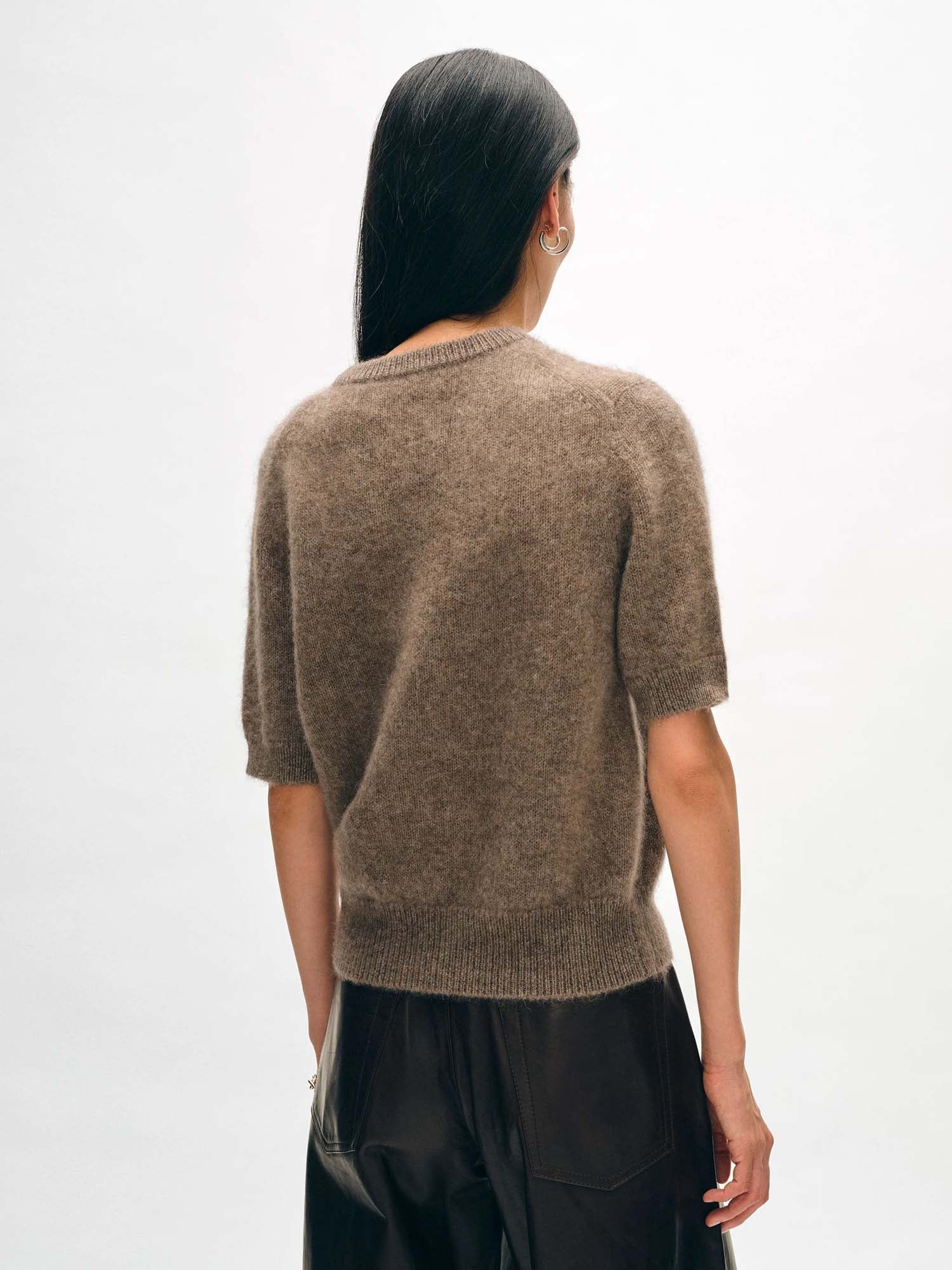 Experience the luxurious comfort of the Brushed Cashmere Tee, crafted from two ends of cashmere for an exceptionally soft touch. This long hair brushed cashmere knit offers a fuzzy appearance reminiscent of mohair while maintaining the light-as-air feel of cashmere. Designed in a straight-fitting silhouette, this timeless tee brings effortless drama to our best-selling Cashmere Tee style. Perfect for adding a cozy factor to more dressed-up affairs, it’s a versatile piece that enhances any outfit.