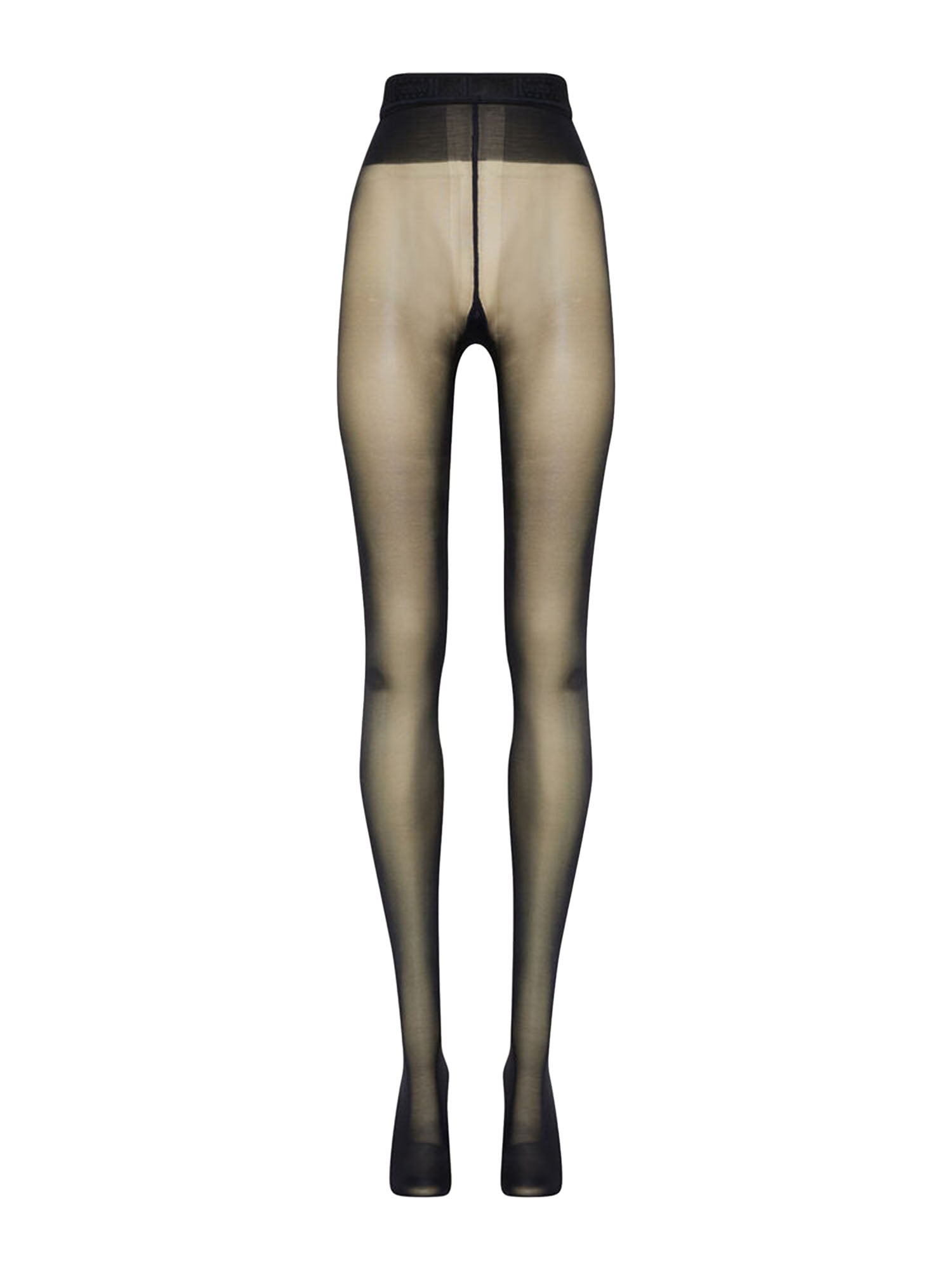 Endlessly elegant: Semi-sheer tights with an extraordinarily luxurious sheen for a particularly brilliant look. The soft waistband with the Wolford logo and almost invisible toe reinforcement ensure all-around comfort.